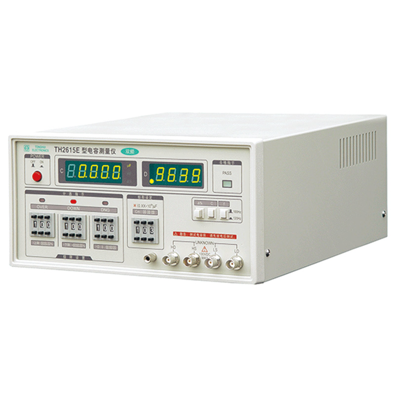 TH2615系列(TH2615B/TH2615C/TH2615E)是一種易操作、智能化的電容測量儀器,儀器價格低,測試速度快,對不同測試頻率、不同測量范圍進行了專門設計,可滿足廣大使用單位的進貨檢驗和電容生產線的快速分選的測量要求。